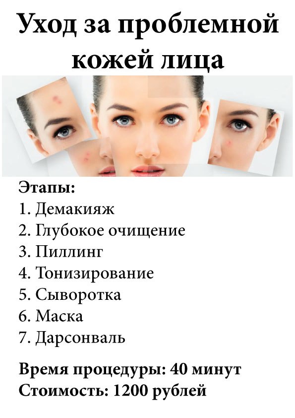Уход за проблемной кожей (пиллинг, сыворотка, маска, дарсонваль) 1200 р.
